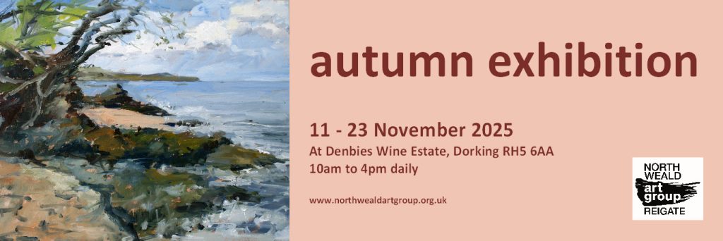 Each year our exhibiting members show around 100 paintings in the beautiful gallery space at Denbies, Dorking. This exhibition runs for two weeks and as well as framed paintings there are greetings cards and unframed work too. More photos here.